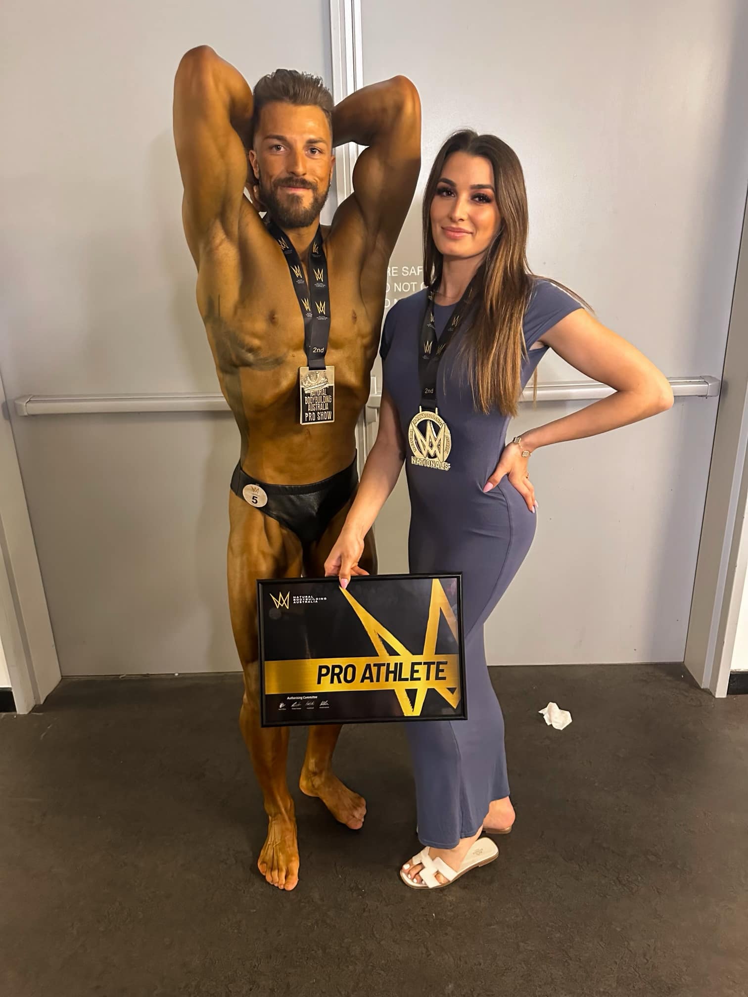 His natural athleticism and his interest in sports nutrition led him to the Physique competition, winning the Men’s Physique Queensland title in 2021 and earning his Pro Card. (All National Competitions were cancelled in 2021). After 3 years offseason he was able to enter the Classic division, which is a step up in both size and proportion.